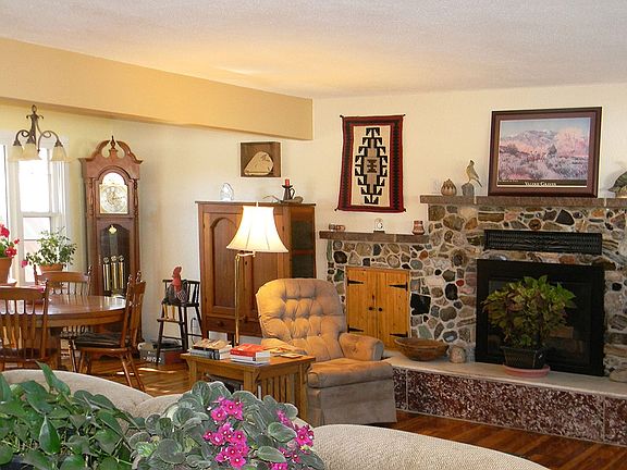 A bit of country charm best describes this wonderful cozy home in a beautiful, well established North neighborhood. The main level is graced with hardwood floors and a unique semi-precious stone and granite wood burning fireplace is the focal point in the huge living room. The enclosed covered patio has a pizza oven. This home has tons of space and a wonderful country feel. Quick closing possible. See addendum. Basement bedroom windows are non-egress. Main floor laundry too! A must see.