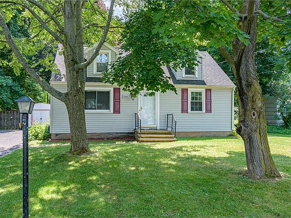 Nice 4 bedroom cape cod, 2 bed up, 2 down, with Athena schools! Partially finished basement with kitchenette with sink makes entertaining easy downstairs! The fully fenced yard comes complete with wooden playset and mature trees, providing a park like setting for gathering in the back yard. Door from kitchen to back yard allows easy access for kids and pooch to the fenced area! Come see what Greece living is all about!