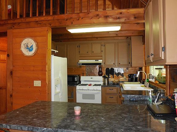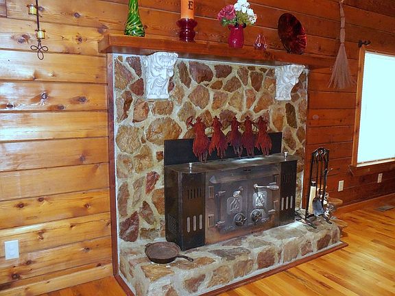 Your dream of living in the country has finally come true! This wonderful log cabin sits on almost 3 acres of land bordering the Francis Marion Forest. An ambling drive leads to your private retreat amongst the woods. This home features a covered country porch spanning the entire width of the home; an ideal spot for entertaining and relaxing. As you enter the home, vaulted ceilings and skylights create a bright open living space complete with stone fireplace. The fireplace is equipped with a working stove insert to keep you warm on those cold winter nights. The open concept floor plan allows the cook to be a part of all the activities. The dining room leads out to another large open porch. The main floor has two additional guest rooms, main bathroom, and a laundry closest. The upstairs