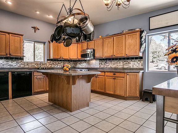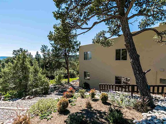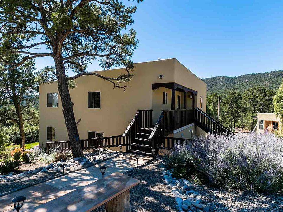 Country living at it's best and just minutes to Santa Fe. Endless mountain views from this four bedroom home sited on nearly 2 private and forested acres adjacent to the National Forest. County maintained road, out buildings to include shed, well house, open barn and firewood splitting area. Tranquil outside entertaining areas surrounded by grassy meadows and occasional wildlife. Upper and lower level bedrooms and bathrooms offer convenience and separation as well as guest and possible mother-in-law quarters. Media and exercise room located on lower level with wood stove and access to patio. Gourmet kitchen, large living room space, Eldorado School district and just minutes from school, grocery shopping, fuel and I-25 access to Santa Fe. Closer than you think and attractively priced.