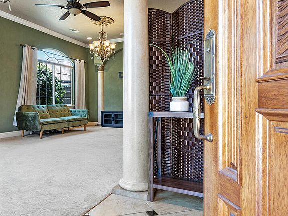 Welcome to Las Lagunas Estates, the most sought after gated community in Lemoore. This stunning home features countless upgrades including : three fireplaces, designer finishes throughout, a gourmet chef's kitchen, top of the line surround sound system, and a central vacuum system installed. The gourmet chef's kitchen features designer granite countertops, custom tile backsplash, and top of the line appliances with a convection oven with a warming drawer. The wet bar, wine storage, and wine fridge are perfect and ready to entertain or for a cozy night in! You will notice the custom Roman columns, beautiful custom fireplace and mantel, and gorgeous chandeliers. The owner's suite is luxurious with its own fireplace and a designer boutique style closet. From your suite, step into your spa style bathroom retreat with custom designer tile, self-heating jet spa tub, and a stunning custom tiled walk in shower. Newly added pergola in the backyard patio creating a shaded private oasis. This home is truly one of a kind!