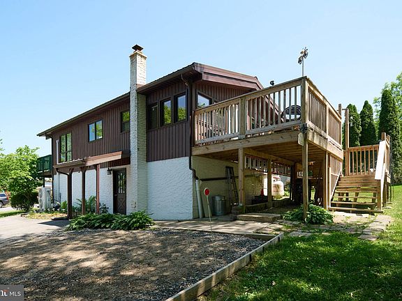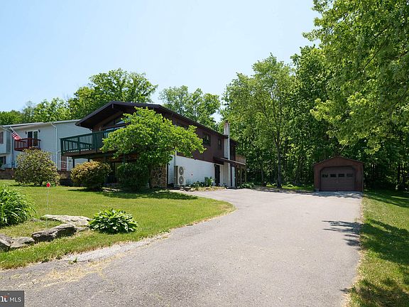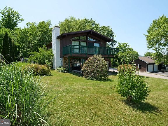 Views of the lake from inside this chalet style raised ranch! Sliding glass doors and windows allow natural light and views of neighboring mountain ranges and Sayers Dam. Cathedral ceilings add to the open feel of living room and dining area with stone accented fireplace. Updated kitchen with newer appliances including a gas range, lots of countertop space and tile backsplash. Light filled home office and primary bedroom with sitting area. Large family room with another fireplace, two more bedrooms and full bath with walk in shower. Laundry/mudroom with extra storage space and a Harmon Coal Stove as another heat source. Improvements include a new metal roof on the home and one car garage. Mini splits were added to easily cool and heat. New deck that overlooks the private back yard and a chicken coop!