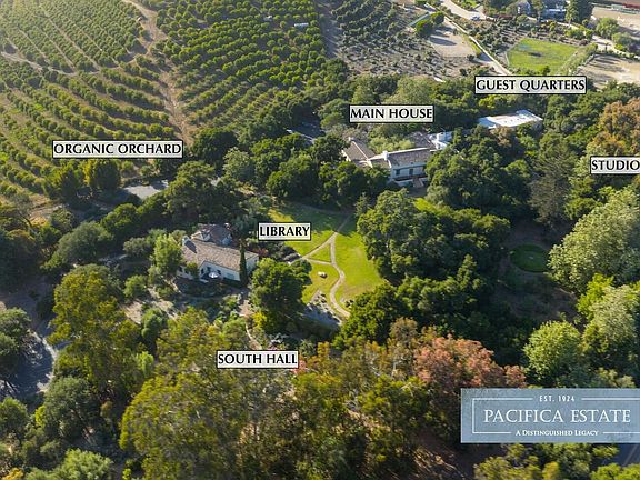 PACIFICA ESTATE is a residential offering, currently used by Pacifica Graduate Institute with a Conditional Use Permit.This 12.22+/- acre landmark with rich coastal heritage is ideally-positioned as an exceptional asset on the Central Coast. Built in 1924 for philanthropist Max Fleischmann, heir to the yeast fortune, this rare estate of cultural, academic & architectural significance, designed by esteemed firm of Johnson, Kaufmann & Coate, reflects a timeless commitment to excellence. Since 1989, the estate flourished under the stewardship of Pacifica Graduate Institute, evolving into a dynamic campus of higher learning with five buildings, organic orchards, paths, gardens & rich history. With a storied legacy,the estate spans gracious land and generations, creating endless possibilities. Originally spanning over 1,200 acres, much of the original acreage was later subdivided. The remaining 12.22 +/- acres on Lambert Road still capture the essence of that luxurious, bygone era. 1989 the property was acquired as a campus and leased to Pacifica Graduate Institute. Through its caring custodianship, the Institute ensured the land's conservancy and the continuation of its cultural and educational legacy. FUTURE POSSIBILITIES: For a discerning residential buyer and investor, with five buildings, the property could be reimagined as a private luxury compound with expansive grounds providing ample space for a primary residence, guest homes, vineyards, orchards, and resort-style amenities such as pools, equestrian facilities, event pavilions, and wellness venues. Already existing as a school, the existing infrastructure could be adapted "as-is" or fully reimagined. Whether restored to its original residential glory or reinterpreted through a modern lens, this property presents a once-in-a-generation opportunity to own a piece of California's coastal heritage poised for possibilities.