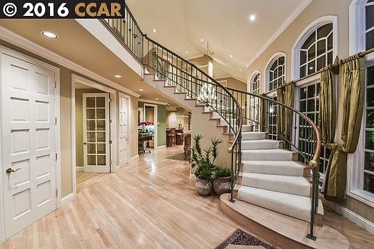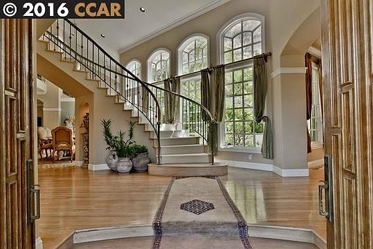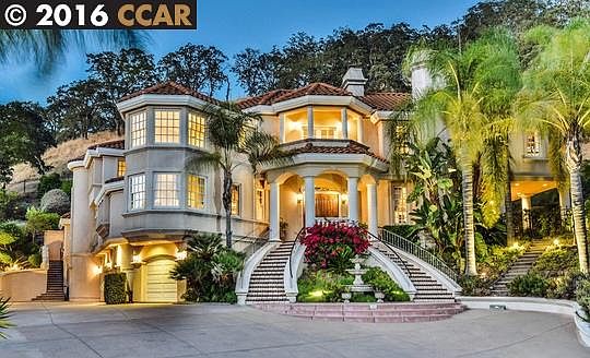 Timeless Mediterranean with abundance of natural light & soaring ceilings. This grand estate offers large formal areas for entertaining. 5 spacious bedrooms plus bonus room & library. Beautiful private grounds with resort-like pool & spa. Au pair set up with private entrance. Views of Las Trampas.