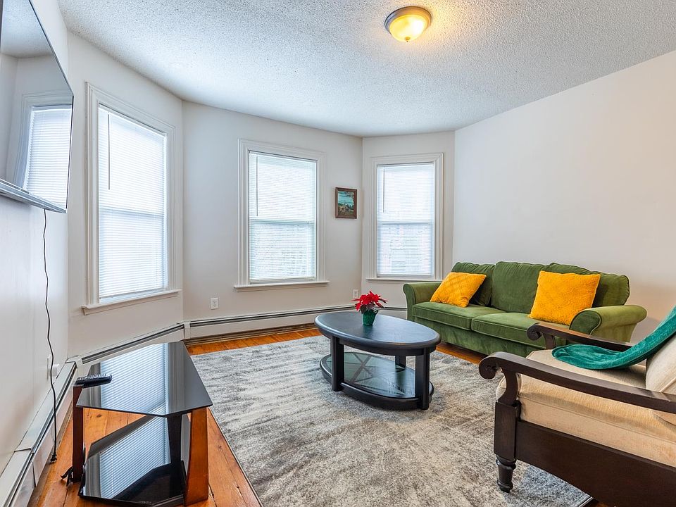 This is a freshly restored apartment on the edge of Downtown Hartford. It sits in one of the most happening neighborhoods in the city where Frog Hollow and Downtown intersect! This location will let you enjoy the convenience of walking/living/playing in the heart of Downtown without fighting traffic to get there. Or find all you need literally just around the corner. This roomy furnished 1200 square foot 2-bedroom apartment on the 2nd floor includes: 1 and a half bathrooms, exposed brick, washer/dryer in-unit, stainless steel appliances, high ceilings, heavy insulation throughout, and a large private covered deck in the rear. The second bedroom is unfurnished and may be used as storage or I can put another bed in there, if desired. The unit also has a designated office space with desk and chair. There is off-street parking behind the building, including a personal garage space. The front door features convenient keyless entry operated by your phone or PIN number. Additionally, the apartment is walking distance to restaurants, bars, a coffee shop, and an ice cream parlor. The State Capitol Building is next door with other government buildings nearby. Minimum credit score of 670. Minimum combined income of 3x rent. Landlord pays water. Tenant pays all other utilities. Off-street/Garage parking $50/mon. No smoking.