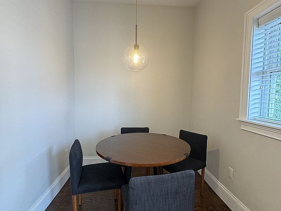 Live at the top of the hill! This renovated unit combines original detail with timeless modern finishes. This 2 bedroom, 1 bath features 9'6" ceilings, 2 bay windows, LED recessed lighting, solid hardwood flooring plus a private deck off open concept floor plan, creating an inviting space to entertain. Bonus room for dining or home office! A bright kitchen boasts marble countertops, beveled subway tile backsplash, recessed panel wood cabinetry, stainless steel appliances w/ slide-in gas range. Large primary bedroom includes a custom closet system w/additional overhead storage. Upgrade to a modern bath with a marble vanity, linen closet & front load washer/dryer. Additional amenities include Central Heat & A/C, NEST thermostat, fenced yard & private basement storage. Great location close to the Blue Line, parks, many great restaurants & shops, groceries, water taxis & all that East Boston has to offer! 12 month lease