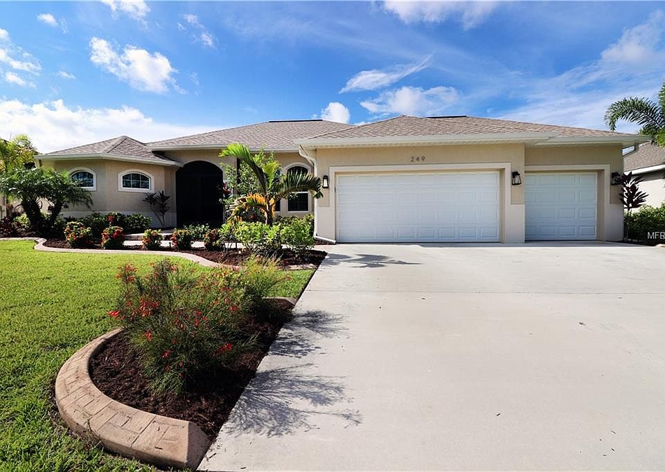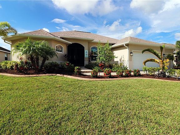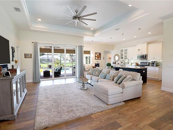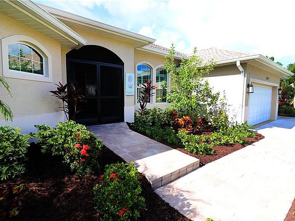 Everyone LOVES upgrades, and this home is loaded with them! Easy Florida living prevails within the walls of the generously upgraded home built in 2016 by Porter Contracting. Its highly desired split and open floor plan encompasses 3 bedrooms, 2 baths, and a 3-stall garage with an epoxy floor. Upon stepping through 8' double doors, guests will appreciate soaring 10' ceilings with a coffer that creates an eye-appealing light-filled ambience in the main living area of the home. Food prep is a pleasure in the stunning kitchen highlighted by 42" solid wood cabinetry, a stainless steel appliance package, and thoughtfully selected granite counter tops. Other notable highlights include a stainless steel farmer's sink and a beverage chiller flanked by additional cabinetry. 8' triple pocketing sliders gracefully extend the abundant indoor entertaining area to the large lanai with its extended pool cage and tranquil freshwater canal view just beyond. The heated saltwater pool and spa are surrounded by stylish brick pavers creating an idyllic outdoor entertaining area. Energy efficiency is paramount in this home and is achieved by a 15-seer Trane HVAC system, R-20 batt insulation in living area ceilings, and and GAF lifetime warranty Timberline shingles over #30 felt and 4-ply plywood sheathing. Low-E PGT impact resistant windows provide additional peace of mind for homeowners. Why wait to build when this magnificent home is available now? Call today to schedule a private showing and prepare to be captivated!