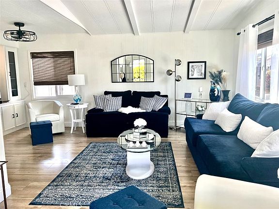 COMPLETELY REMODELED corner location cottage home in Bayside Village in the heart of Newport Beach. Custom upgraded home has numerous designer finishes and sits on an oversized lot with plenty of outdoor space. Large open great room offers beamed ceilings, custom window treatments, new baseboards throughout home, central A/C, and entertainment center. New retractable and invisible front door screen allows for cool breezes. Make your way into the open kitchen with views out to the courtyard. Kitchen has stainless appliances, farmer's sink, butcher block counter tops, beautiful wainscoting, walk in pantry, and custom lighting. Large dining room just off the kitchen has access to no-maintenance trex deck perfect for sunsets in the evenings. Deck has a BBQ with gas connection so no need for propane tanks. Two large bedrooms with walk in closets are freshly painted, open & bright with lots of privacy. Master bath is remodeled with walk in shower with glass enclosure and fresh tile. Additional bathroom is finished with designer shiplap wall, new cabinets, and walk in shower with glass sliding enclosure. Laundry room leads out to covered carport finished with vintage brick & a storage shed. There is an additional 6’ x 3’ storage shed on the back of the house accessed by paver walking path. Outside boasts lush, landscaped courtyard offering plenty of private space. Exterior was recently painted, new screens installed plus landscaping, irrigation system, extensive solar landscape lighting and Arlo camera security system. Bayside Village is just steps to Back Bay, marina, private beach, pools, clubhouses, activities and minutes from Balboa Island, Fashion Island, beaches & restaurants. Property on leased land with monthly land lease of $3100 includes water, trash & community amenities. No HOA dues or land taxes. Come enjoy all that Newport has to offer at a fraction of the cost!