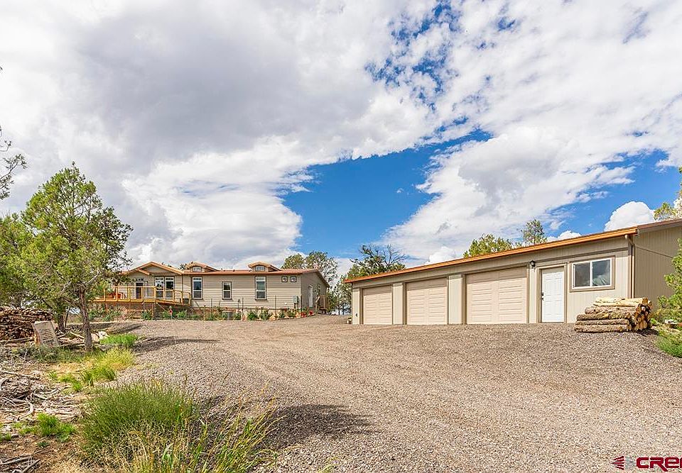 Experience the epitome of Durango living with this meticulously maintained "two-year-new" modular home, nestled on 3.58 acres of tranquil, treed landscape boasting stunning La Plata mountain views. This exquisite property offers both privacy and convenience, located at the end of a secluded road yet just a short 10-minute drive to the hospital and 20 minutes to downtown Durango. The heart of this home is its expansive kitchen, featuring solid surface countertops, stainless steel appliances, extensive cabinetry, and a generously sized pantry. Designed for seamless integration with the dining area and living room, the open-concept floor plan provides a contemporary living space with versatile options for your furnishings. The primary bedroom is a serene retreat, offering unobstructed views of the majestic La Plata mountains. Indulge in the luxurious master bathroom, complete with a spacious soaking tub, separate shower, double vanity, and picturesque views from every window. The meticulously organized walk-in closet provides ample storage space. The second bedroom, located away from the main living area, is elegantly appointed with quality finishes and offers additional storage. Originally designed as a three-bedroom home, one room has been thoughtfully converted into an oversized office, providing versatile space for a den, fitness room, or any other purpose to suit your lifestyle. The utility room is equipped with built-in storage cabinets, offering further storage solutions. Enjoy the convenience of central water provided by the La Plata Archuleta Water District, along with a forced air furnace and central A/C system to ensure year-round comfort. The energy-efficient Rinnai tankless water heater efficiently meets all your hot water needs while keeping utility costs low. For additional storage or potential expansion, the crawl space features over 8-foot ceilings and can easily be converted into a basement, accessible through an exterior door. Currently finished for storage, this versatile space offers endless possibilities. The detached 50'x28' three-car garage is designed with functionality in mind, featuring an oversized layout for workshop space, a standing seam metal roof, high-quality LED lighting, a shop heater, and a 200-amp electric service panel. With ample room for all your tools and toys, this garage is a craftsman's dream. Impeccably built and finished throughout, this home exudes quality and attention to detail at every turn. Don't miss this exceptional opportunity to own a like-new home in a prime location, offering exceptional value and unparalleled privacy. Schedule your private showing today and prepare to be impressed!
