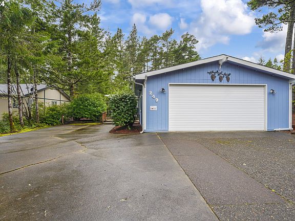 Welcome to this charming 3-bedroom, 2-bathroom home nestled in the serene Florentine Estates of Florence, Oregon. With its inviting living area featuring vaulted ceilings and stylish vinyl flooring, this residence offers a comfortable and modern ambiance for everyday living.Step into the remodeled kitchen, boasting plenty of cabinets, quartz counters, and an inviting eating bar. The adjacent breakfast nook area opens up to a covered large patio, perfect for effortless BBQs and outdoor dining experiences.The primary bedroom is a retreat on its own, featuring a vaulted ceiling, a walk-in closet, and an en-suite bath remodeled with a glass tile shower and other luxurious touches. Additionally, a slider off the primary bedroom leads to a sunroom, providing an ideal spot for morning coffee.Two separate bedrooms are perfect for guests, with one showcasing built-in shelving for added convenience. A mosaic walkway from the sunroom to the front entrance adds a touch of charm to the exterior.This home also includes a large detached garage and is strategically set back from the street, ensuring privacy and tranquility. Ample parking is available in the spacious driveway, making hosting gatherings a breeze.Florentine Estates is a gated 55+ active community offering an array of amenities such as a clubhouse, indoor pool, tennis court, and more, providing residents with a vibrant and fulfilling lifestyle.