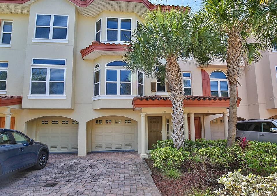 Beautiful Bayside Townhome located between the Bay and the Gulf of Mexico. Start living the "island life" in this beautiful Bradenton Beach Club turnkey Townhome. This townhome has a private elevator, 2 + car garage and New furnishings that all stay.. It boasts 3 levels of spacious living with a private elevator, newer flooring, fresh paint. Weekly rentals are allowed which will help pay for your investment. This is an amazing location from which you may walk across the street to the private Gulf front community pool & your private storage locker for all your personal beach gear. The Second pool and club house are across from the townhome along with a kayak launch area with deeded beach access. The First level of the townhome has a garage, entry foyer & storage area + a bonus room that walks out to the back area of the townhome. You may access the Second level by elevator which features an open floor plan with a large great room, dining area combo with a walkout screened in lanai. fully equipped kitchen with a center island, lots of storage and a breakfast nook. There is also a powder room on the 2nd level. On the third level you have the owner's suite which features a large luxury bath with Jet tub and separate shower, double sinks & a walk in closet. The 2nd bedroom has a walk in closet and peeks of the intracoastal. There is also a third bedroom/Den. Spend the day on the Fishing pier or kayak in the bay or you can walk across the street to the beach and swim in the aqua blue Gulf waters. The Island Trolley is free and a great way to spend the day shopping and exploring the entire 7 miles of the Island. Taking your bike for a ride all around is another way to go and explore the island. Other features: AC 2021, new wood floor 3rd level & stairs. Pet friendly too allows 2 pets. Elevator was serviced in May 2022. This home is sure to please and is ready for you to own you own island dream home. Please view both the 360 Matterport tour and the Drone video of the area. Buyer to verify all info & measurements of water front and room sizes