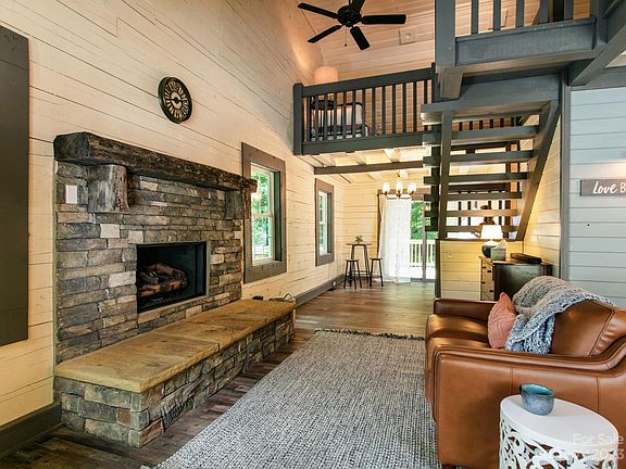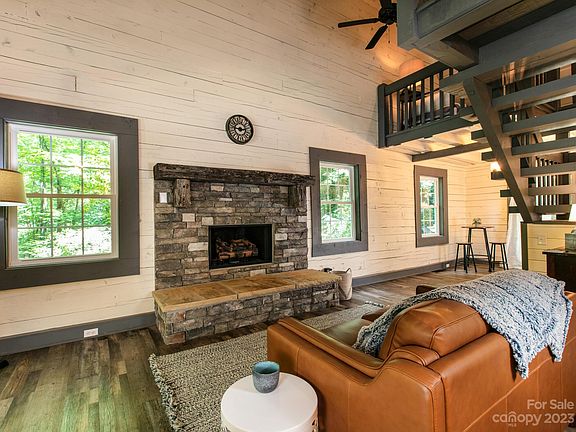 Welcome to 249 Nottingham in Sherwood Forest! Your chance to relax and escape the hustle and bustle of everyday life while still being just minutes away from downtown Maggie Valley. This Cozy Cabin has all the modern finishes you want with warm wood and stone touches unique to the Western North Carolina mountains. Enjoy this open floor plan, complete with a 2 story main floor Living Room featuring a stunning stacked stone gas fireplace that will keep you warm on chilly mountain evenings. This 2 bedroom 2 full bathroom home features a split bedroom plan, with 2 additional gathering spaces on the 2nd floor. Step outside on the private decks and yard, equipped with hot tub, fire pit, meandering creek, small pond, swing, & loads of native NC rhododendrons. With an attached garage and easy year-round access, this property truly has it all whether you're looking for an active turnkey established short term vacation rental or permanent residence, this home will exceed your expectations!