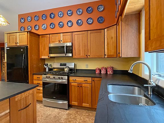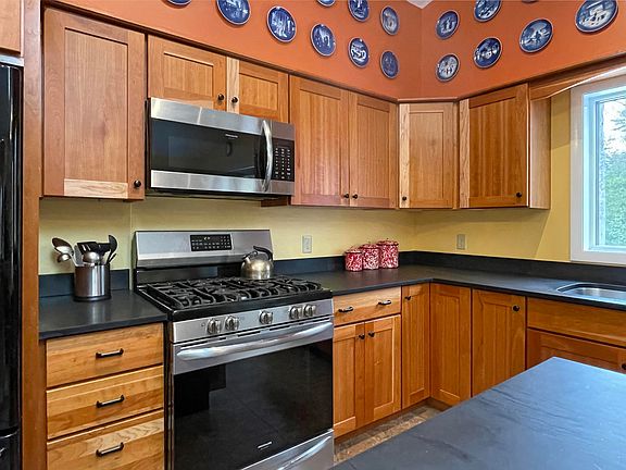 Located in the serene mountain town of Lincoln, this meticulously-maintained 3 bedroom, 2.5 bath contemporary split level home sits on a mostly wooded 4.87 acres on a private dead end road. The main level, with vaulted ceilings and skylights, is highlighted by the custom kitchen with cherry cabinetry and slate countertops and flows to the dining and living areas. Down the hall, you will find a half bath with laundry along with the primary bedroom boasting dual closets and an ensuite bathroom with double sinks. The lower level is home to 2 additional bedrooms, full bath, cozy family room with brick hearth and pellet stove, and utility room. Additional features of this property include a standing seam roof, a heat pump on the main level, generator hook up, an attached 1 car garage with direct access from both levels of the home, along with a detached 2 car garage/barn that can double as a workshop. Once outside, relax on the back deck or expansive side porch, tend to your raised garden beds, or simply take in the natural beauty of the mature landscaping and abundant wildlife. Lincoln is an idyllic community with a general store, elementary school, community gathering spaces, and is close to hiking, river swimming, and skiing. Be sure to view the 3D tour of this home's interior!