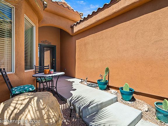 Good thing you waited to purchase, because now you don't want to miss out!. Stunning Golf Course Homesite on the 3rd Hole of Palmer Golf Course, with green grass you don't have to mow! Full patio in the back for quiet evenings of BBQing or entertaining your friends. Did I tell you that as you come in thru the front door, the layout is amazing, from the cute entry way, to the guest bedroom with a bay window and room for an office, upgraded kitchen counters and cabinets in the kitchen. This is just the greatest home that is in a gated community next to the Oasis Golf Course. Perfect home for a "Snow Bird" or a full time resident with low maintenance. Down the street is the Mesquite Vistas Community Center which you will be a member of with an exercise area, swimming pool and hot tub as well as Tennis Courts. And Did I mention the Golf Course is right there! Hurry before this is gone!