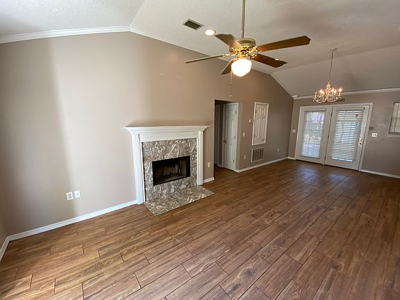 AVAILABLE NOW! Open split floor plan 3 bedroom / 2 bath home in LAKE FOREST-Large kitchen, wood flooring in LR with fireplace, fenced in yard and outside storage building.
