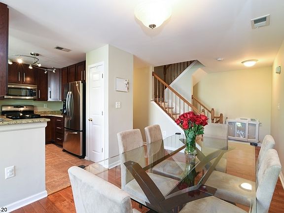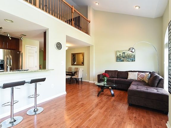 Serenity awaits in this FABULOUS sun drenched "Berkeley" end unit townhouse in sought after Riverwalk community! Meticulously maintained! Freshly painted with HARDWOOD FLOORS throughout. Cathedral ceiling oversized windows and window treatments. Open floor plan with updated gourmet kitchen with s/s appliances, granite counters and breakfast bar! Second floor loft overlooking LR can also be used as extra family room or bedroom. MBR suite with private balcony for morning coffee overlooking tree lined serene rear yard. Attached garage with plenty of storage space! Luxury community featuring outdoor pool,tennis courts,walking/jogging path along the river. Commuter's dream walking distance to bus and train. Close to highways shopping restaurants. Welcome home!