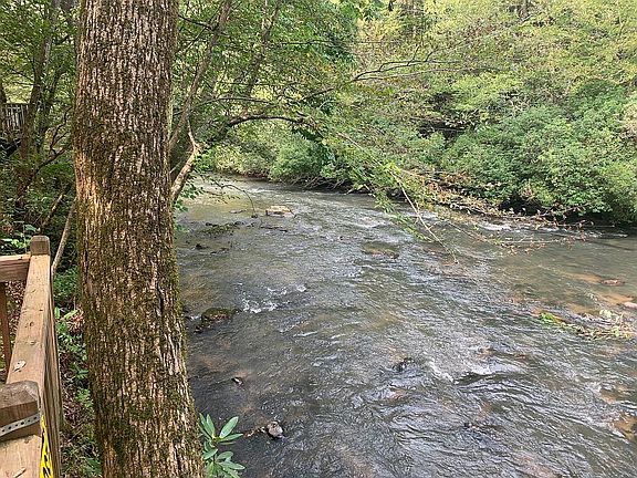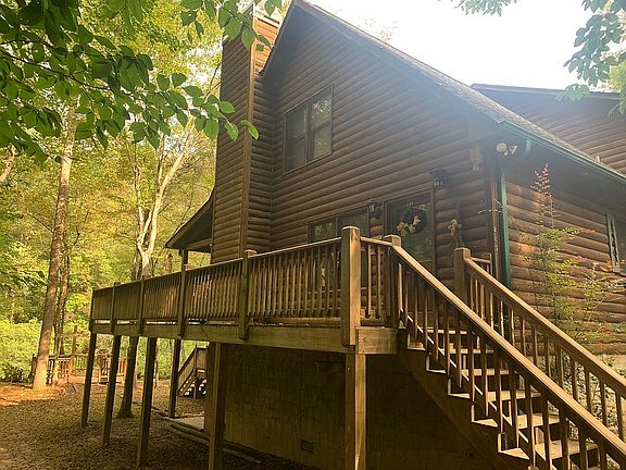 Amazing River Front Cabin w/ open architectural concept w/ wood beams in the ceiling. Kitchen w/ stainless appliances, living room w/ floor to ceiling stone fireplace. Bedrooms w/ doors opening to deck. Loft could serve as a third bedroom. Beautiful views of the river from the cabin & Great entertainment deck overhanging the river.