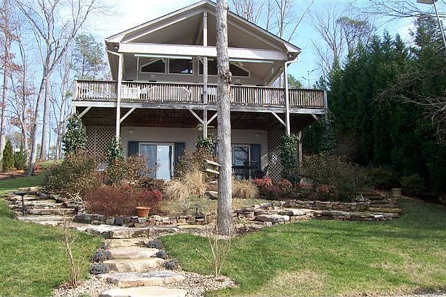 Miles of main channel and 180 degree views from this 99' waterfront lake home. The "Lure of the Lake Cottage" speaks for itself. Located in a private cul-de-sac, this home is a dream come true (comfortable, eclectic furnishings negotiable). 1825 sq. ft. complete this immaculate 4 bedroom, 2 bath home. Separate building for storage or workshop. Tile and hardwood flooring throughout. Updated kitchen with new stainless appliances. Upper deck welcomes you with a relaxing custom daybed swing. The oversized dock was remodeled in 2009 with Trex (permanent) decking. Boathouse has large double stalls, double waverunner lifts, 2 oversized storage closets and entertaining area. Deep water but also safe for children and animals while swimming. Exquisite professional landscaping with irrigation. Loads of hand-laid stonework make property one of a kind. Boat included. Lots of glass, open floor plan for easy living. Sleeps 10 comfortably. Most beautiful view on the lake and the best place to watch the firework display on the 4th of July! Come see for yourself!!