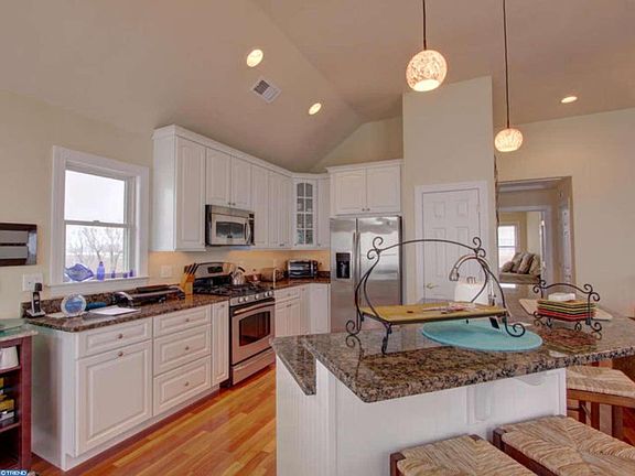 R-9834 Enjoy beautiful unobstructed views of sunrises on the Delaware Bay from the 2 decks facing the water and views of sunsets & wildlife in the marshlands from your two decks facing from the back of the home. Each bedroom has it's own private deck and full bathroom. The Master Bedroom and sitting area w/ fireplace are Bay side. 4th deck is on the upper level and is off of the living and dining areas. Pictures taken from decks in the morning during sunrise and you can see the dramatic casting of light and shadows dancing on the walls and cathedral ceilings that are found throughout the home. Beautiful hardwoods are throughout the upper main living area and kitchen boasts granite counter tops, stainless steel appliances and plenty of cabinetry. Dual zoned heating/AC. 2 water heaters. Large storage room under the home and is on Kent County Sewer. Close to DAFB. Taxes include trash. HOA includes water. This is a must see one of a kind very custom contemporary beach home. Literally every room has a view.