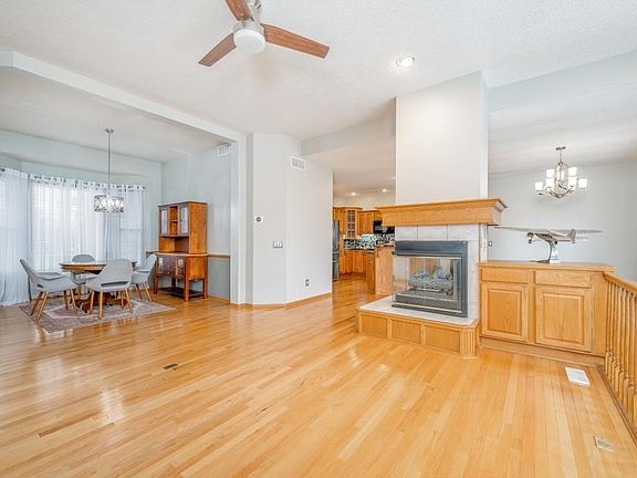 Wide, winding lanes, lush lawns, and mature trees welcome you to this beautifully maintained home in the coveted Green Valley neighborhood. Step inside and fall in love with the open and airy floor plan, filled with natural light, and with living, dining, and kitchen spaces seamlessly bound together with hardwood flooring, all punctuated with a beautiful gas peninsula fireplace. The primary bedroom is a sanctuary for rest and relaxation, complete with a large en suite with garden tub, double vanity, shower, and a large, walk-in closet. While in the cabinet-lined kitchen take note of the gorgeous granite and modern backsplash, just steps from two additional bedrooms, a full bath, main floor laundry, and an oversized three bay garage with workbench and storage. Travel downstairs past large windows and sliding patio doors to the expansive family room, an ideal retreat for game night, television, workout equipment, and much more! Enjoy an additional bedroom and full bath, along with storage, storage, and more storage, perfect for keeping holiday decors and personal effects well organized. An additional bonus room completes the lower level, ideal for a play room, craft or hobby oasis, home office, additional storage, or a fifth, non-conforming bedroom. Enjoy the 1/3 acre lot from the massive, stamped concrete patio, perfect for chilly nights next to the chimenea or on warm, summer days near the grill. The backyard comes complete with play equipment and is also just steps from the community swimming pool and playground. Serene suburban living, big city conveniences, and nationally-recognized schools unite in this lovely home. Don't wait to schedule your private showing today - welcome home!