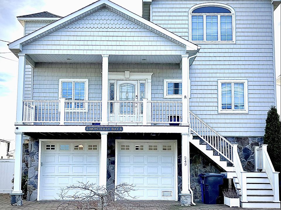 Spacious, sunny, bright, and tastefully decorated waterfront rental in Lavallette, NJ. Summer weeks available. 5 Bedrooms, 3 bathrooms, open dining room, living room and kitchen, two levels of gathering space, outdoor living space with dining seating for 10, lounge chairs, sectional couch and fire table. Three levels of decks, balconies, and elevated front porch. Open water and sunset views. Three blocks to the beach, 5 houses to open water. Driveways allow for up to 6 cars for off street parking. Enjoy the 50' wide dock, as the house is equipped with kayaks, paddle boards, beach chairs, floats, crabbing supplies, and many other toys to use at the ocean and bay. Close to restaurants, shops, and everything you need to make wonderful memories of your Jersey Shore vacation! This is a one month rental, $7,000 per week starting June 23 and ending July 21. Single weeks available. This is a no smoking home, and a family community. Not accepting groups.