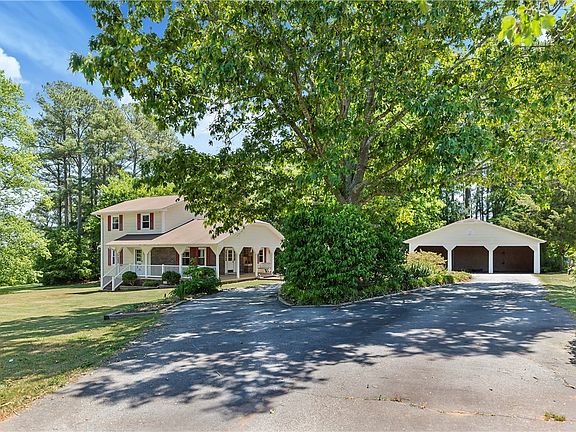 Country living at it's best! Bring the rocking chairs for your wraparound porch. Situated on a little over 2 acres, there is plenty room to "spread out" and have some privacy. Cozy living room w/ fireplace and built-in shelves/desk. Formal dining room just off the kitchen. You can enter the mud/utility room from the rear of the house. In addition, there is a second room off the kitchen that could be a massive laundry room, breakfast area, or keeping room (several possibilities). There are two bedrooms and on the main level and two bedrooms on the upper level (one without closet). When you enter the property, you will notice the massive, beautiful shade trees. Plenty of parking with circular drive and access to a three bay detached building. Large backyard for garden, pets, or kid's playset. In addition, two outbuildings that are included in the sale of the home. With a few updates and TLC, this home could be a true showplace. Home is being sold As-Is. Make your appointment today to experience this fantastic property..