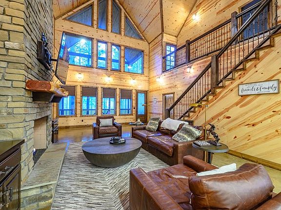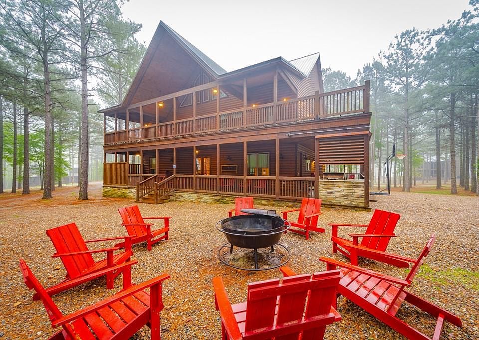 "Boomerang" is a high luxe 7 bed/ 6 bath modern cabin that comfortable sleeps 18 guests. This impressive cabin is situated on a large corner lot (almost 2 acres) and has plenty of room for guests to enjoy outside and in. Guests can relax outside on of of the two decks that wrap around this property or enjoy some time by the fire pit. An outdoor kitchen and luxury kitchen indoors make entertaining easy. This cabin also features a luxury hot tub that is sure to help anyone wind down after a long day out on the lake or hiking the beautiful trails at Beavers Bend State Park. It is within walking distance to the beautiful Pine Hill Pond within the Pine Hill development with paved roads and easy access to Hochatown attractions. This would make a perfect second home or income producing property.