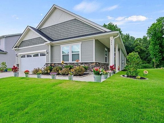 This charming cottage-style home with tons of elegant upgrades is a must-see. Open concept with 9ft ceilings, spacious kitchen, oversized granite-top island and stainless appliances. Designer lighting, white cabinets, tile backsplash and luxury LVP. - no carpet! Delightful double covered patio overlooking quiet wooded lot. Perfect for one-story living; tankless water heater, convenient to hwys 42, 401 and 55.