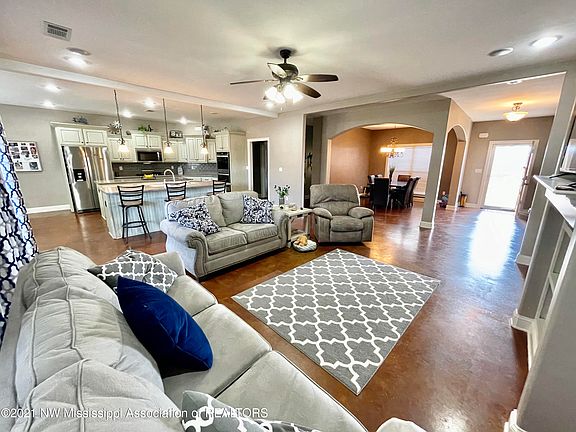 Beautiful 5 bedroom, 3 bath home on 1.8 acres at the end of a dead end road offering peace and privacy. This home offers a formal dining room, arched doorways, recessed lights, stained concrete floors, built in bookcases, built in desk, open floor plan, 2 bedroom/2 bathroom split plan down, large laundry room, and custom cabinets. The eat in kitchen features double ovens, center island, built in microwave, gas cook top, and a huge walk-in pantry. The master suite has a door that leads out to the patio, double sinks, and a separate tub and shower. Upstairs you will find 3 bedrooms, and a full bathroom. This is the perfect floor plan for entertaining! The lot is surrounded on 2 sides by woods, which is perfect to enjoy watching the deer. This is a must see!