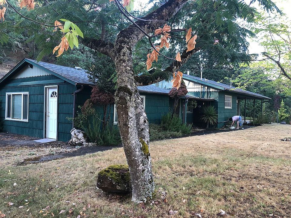 ESTATE SALE, priced for "AS IS" sale. Tranquil home nestled in the trees above Roseburg with spectacular views. Built in the 50s with original hardwood flooring. (some rooms with carpet over hardwood) Newer furnace and hot water heater. 2 Lots, Home is on one acre with UBW certificate. 2 bed, 1 Den, Large Bonus Room, 30 x30 shop and Carport.