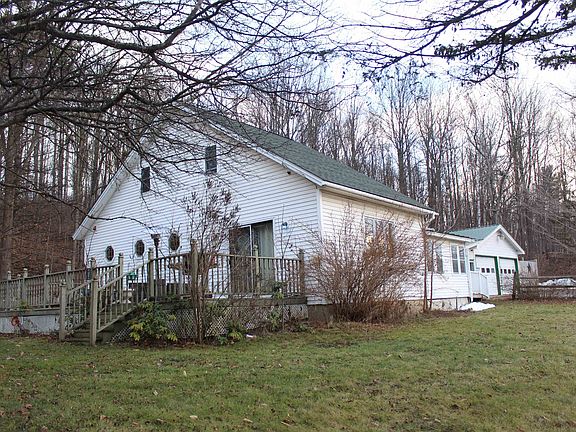 Whether your looking for a great starter home, something smaller as you down-size or just the convenience of a low maintenance home close to the village, this home is a great option. On the first floor you'll find a spacious eat-in kitchen, a large L-shaped living room, full bathroom, office and bedroom with 1/2 bath and laundry. Upstairs is the second large bedroom with 1/2 bath. Some of the recent improvements included the entry mudroom has been drywalled and insulated, the entire interior of house has been painted and new flooring installed throughout. Furnace, hot water heater and roof all relatively new as well. A two car detached garage offers lots of additional room for a workshop and storage. The 3+ acre lot run behind the home, is gentle sloping and mostly wooded. A large deck overlooks a spacious level lawn with plenty of room for a wonderful garden. The convenience of 22A means an easy commute to Middlebury or Rutland, and with an ample turn-about space coming out of the garage, you'll never need to back out onto 22A. Great mountain views to the west. Affordable, convenient, low maintenance living in a great town! Come see where home could be!