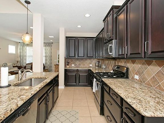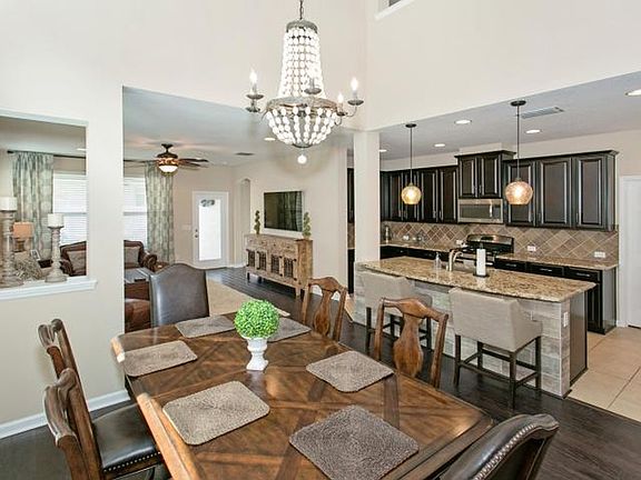 This beautifully designed & maintained home offers a wonderfully open floor plan with all the upgrades you could ever want. From the front stacked stone entry to the oversized pavered patio with firepit, this home is perfect for family & entertaining. Details include 4'' handscraped wood floors in public areas, a cooks kitchen with granite counters, upgraded 42'' cabinets with crown moulding, stainless appliances incl gas stove/oven and refrigerator, a center island perfect for bar stools, custom light fixtures throughout, spacious master bedroom downstairs with huge vaulted ceiling, master bath has double vanities, garden tub, custom tile shower with listello accent, massive closet. Upstairs are 3 bedrooms plus open bonus/playroom. Truly one of a kind home.