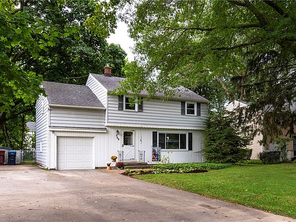 Welcome to this beautiful spacious 6 bedrooms 2 1/2 baths Colonial in the Mt Airy neighborhood with West Irondequoit schools, Light & comfortable eat in kitchen with sky lights and slider to large deck overlooking fenced in yard and pond. Den /Rec Room also with slider to the large deck. Formal Dining Room, Large Livingroom. Upstairs has 6 bedrooms including a large primary ensuite with shower. Also, a second full bath with tub. Dry partial basement with laundry, work room, and bonus room. Newer vinyl windows, hardwood floors underneath carpeting, Full house permanent generator, all appliances included, plus home warranty.