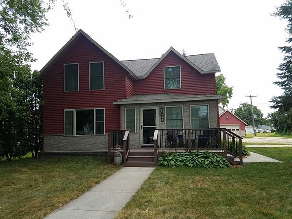 Charm of old but updates to feel new. Beautiful kitchen with back splash and stainless appliances. Pantry for extra storage. Solid panel doors enhance the kitchen which leads into the living room. Main floor bedroom and full bath. Welcoming deck on front of home and another deck on side entrance. First floor laundry with sink finishes off this level. Upper level boasts 2 bedroom and another full bath. Lower level is unfinished but offers great storage. Detached oversized garage finished to match the updated home. Great level yard to entertain and enjoy kids and pets. Bring your fussiest buyer - they won't be disappointed!