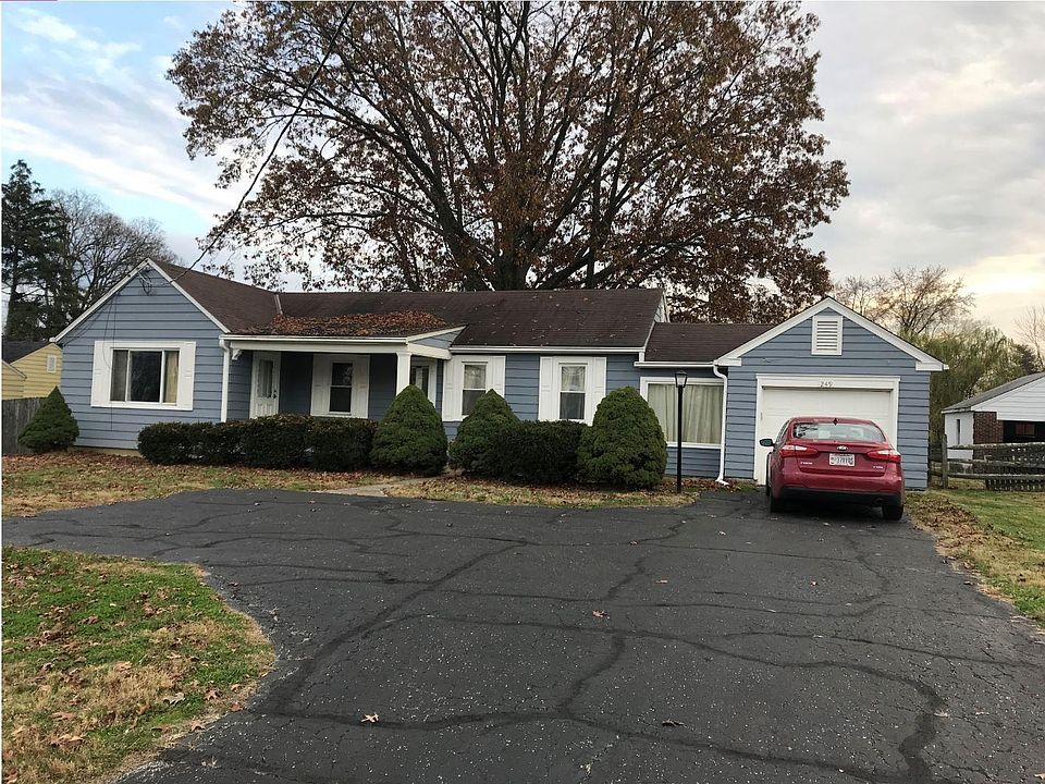 Welcome Visitors on Front Covered Porch! 2 bd 1 ba ranch on over an acre of land, w/det garage, attached garage & basement. Handyman Special. Furnace and A/C 2008.