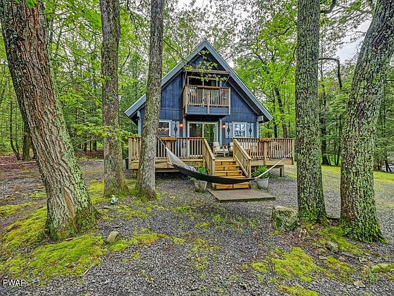 This amazing home featuring modern enhancements nestled within a community rich in amenities! This delightful cabin includes two bedrooms and one and a half bathrooms, and a generous garage along with gazebo. Enjoy your morning coffee on the master bedroom balcony while observing the local wildlife. The cabin boasts stunning hardwood floors and an ultra -modern kitchen, complemented by a brand-new roof on both the house and garage, as well as the gazebo. The expansive front deck is perfect for hosting barbecues and enjoying the serene surroundings ! Call Today for your private tour! This home is sure to not last !
