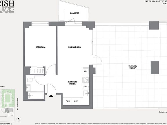 - Exterior features: Bicycle storage, Broker Exclusive, Fios Available, Garden, Media Room, No Fee, Package Receiving, Parking, Recreation Facilities, Roofdeck, Terrace