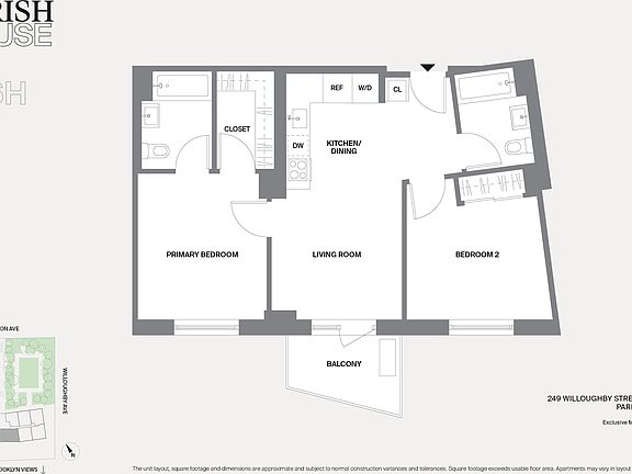 Stunning 2 Bedroom/2 Bath with Balcony in Landmark Brooklyn! Located on the grounds of historic St. Mary's Church and adjacent to the acclaimed Pratt Institute campus, the newly completed 17-story Parish House epitomizes modern residential design in the heart of trend-setting Clinton Hill, Brooklyn. Each of the 138 one- and two-bedroom floor plans, cleverly conceived by award-winning NYC-based DXA Studios to maximize each resident's living experience, boasts oversized floor to ceiling glass to allow natural light to stream in from sunup to sundown. The sense of expansiveness in each of these homes is enhanced by private outdoor balconies with sweeping views of Downtown Brooklyn, the Brooklyn and Williamsburg Bridges, Manhattan's awe-inspiring skyline, or the charm of tree-lined streets and the picture-perfect Gothic Revival steeple of the church below. Let your personal style come to life with materials that are both warm in tone yet embody modern interior design principles for a neutrality that serves as a true canvas for each resident. Top-of-the-line stainless steel appliances and fixtures from Blomberg, Haier, Fisher & Paykel and Grohe, as well as materials ranging from white quartz countertops and oak cabinetry to porcelain tiled backsplashes are among the many designer-quality features offered. Parish House boasts an impressive 20,000 SF of amenity space, including a attended lobby and co-working lounge, a state-of-the-art fitness center and yoga/movement studio, outdoor gaming terrace, private park, and an exclusive 17th Floor Sunset Lounge with a sprawling landscaped Skydeck perfect for sunbathing or a BBQ, overlooking NYC skyline views that stretch from downtown Brooklyn, through to Manhattan and North to the Williamsburg Bridge as a backdrop. Brooklyn's Clinton Hill is one of the city's most talked about neighborhoods, offering everything from Michelin-star dining to trendy boutiques to a nightlife and music scene that never sleeps. Known by Brooklynites as one of NYC's most charming and historic neighborhood gems, Clinton Hill offers quiet, bucolic streets lined with towering trees, historic brownstones and picturesque wooden row homes. The G-train, A-train, C-train and frequent local bus service can take you to neighboring Williamsburg, DUMBO and Greenpoint with easy connections to the rest of the city. Daily Amenities Attended Lobby with Package Room (Hours 7am 11pm daily) Private Resident Storage* Indoor Parking Garage* Bicycle Storage* Building Amenities* Outdoor: Private Resident's Only Park 3rd Floor Outdoor Gaming Terrace featuring: Lounge Seating Outdoor Ping Pong Table Foosball Table Cornhole Area 17th Floor Outdoor Sky Deck with Lounging and Sunbathing, BBQs and Dining Areas with Unparalleled Views Indoor: Attended Lobby and Co-working Lounge State-of-the-art Fitness Center Featuring: Cardiovascular Training Multi-use Weight Machinery Peloton Bikes Free Weight Training Equipment Yoga / Movement Studio 17th Floor Sunset Lounge Featuring: Landscaped Outdoor Sky Deck Media Lounge Area Billiards and Tabletop Shuffleboard Gaming Area Resident's Private Party Area with Wet Bar / Kitchenette