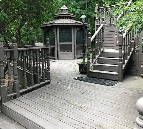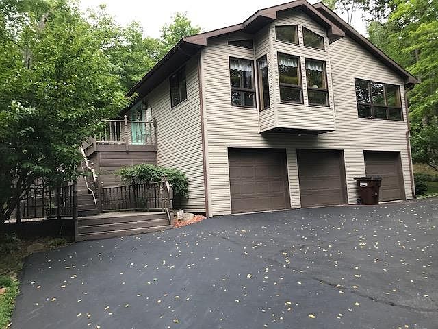 Natural beauty surrounds this 1.44 Acre Site. The home plan was selected to offer the ultimate in privacy, space and utilize the terraced grounds for multiple decks offering separate entertainment areas and privacy with mature wooded backdrops. Well-designed great Great room with soaring ceilings emphasize the design illuminated by a wall of windows. Stunning kitchen has court counters, designer Cabinetry and a stone backsplash. Florida- dining room opens to a private deck. Master Suite expands out to a private screen dream to enjoy the outdoors even more. Master bath has a large walk-in closet. Driveway leads to the three-car garage and extra wide parking area. Additional outdoor features include a screened gazebo, 12 by 22 pool house, 16 x 32 in-ground pool, fire pit with benches. Subject to seller finding suitable housing.