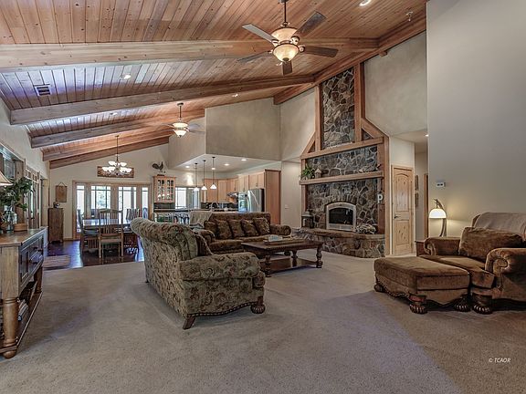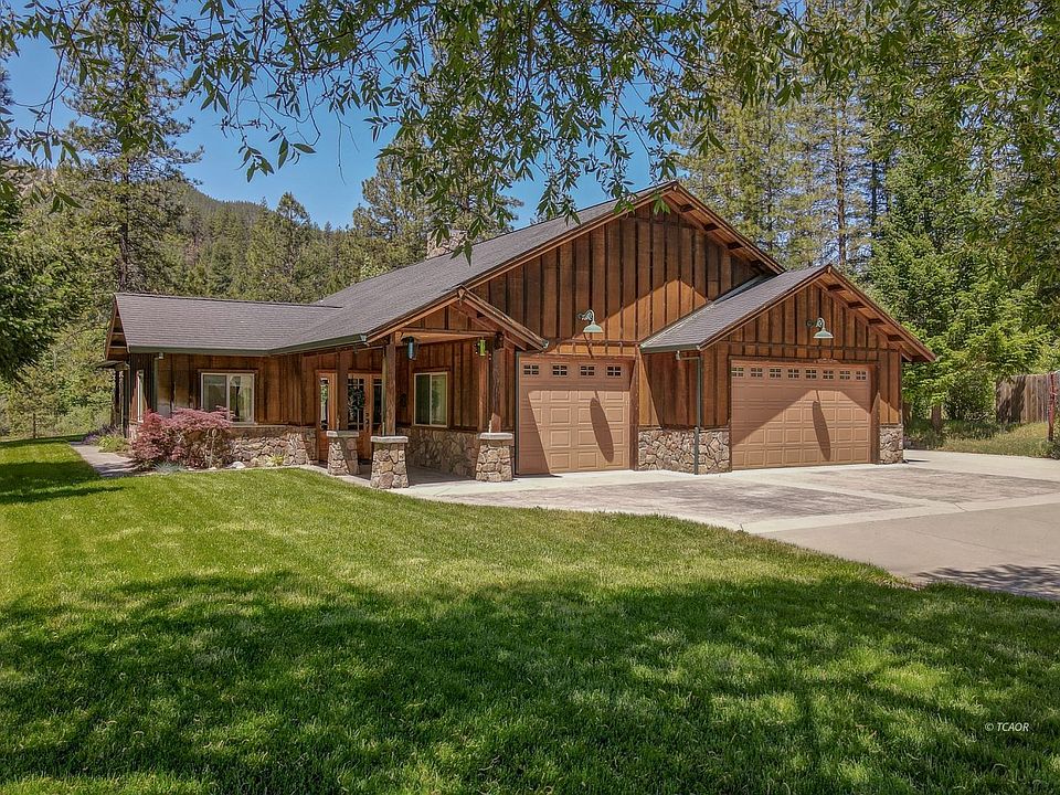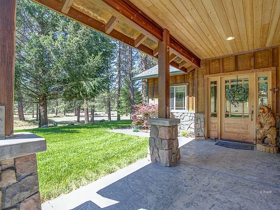 This gorgeous custom home draws you in the moment you turn down the drive. Beautifully crafted and meticulously maintained, the home fits its surroundings perfectly with warm wood & rock accents throughout. The entry opens up to the expansive living room with a striking rock fireplace, built-in custom cabinetry & a brand new 75 inch TV. Open concept kitchen & dining area with French doors to the back patio, a brightly lit office, and a screened in sunroom with removable windows - the perfect place to have your morning coffee, year-round! The kitchen includes custom cabinetry, granite tile countertops, stainless steel appliances, large island w/ extra sink, wine cooler, double ovens, & 5-burner propane cooktop. The owner's suite features French doors to the backyard, walk-in shower, and huge walk-in closet. The back patio is truly a place of tranquility with the sounds of the river, birds, and breeze through the trees. Stamped concrete patio & sidewalks surround the home. 3-car attached garage, WiFi sprinkler system, RV hookups, garden shed, fenced garden area w/ fruit trees & raised beds, all on 2.66 acres near the Trinity River. Once you visit this place, you won't want to leave!