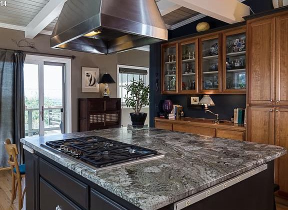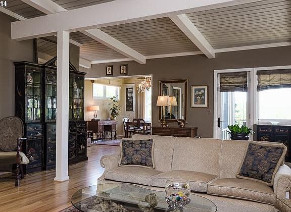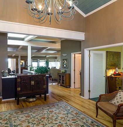 Motivated sellers have reduced the price on this unique home. Sophisticated d̮̩cor, beamed ceilings, hardwood floors, fabulous cook's kitchen w/ granite, gas cooktop in island, large master suite. Easy one level living + daylight lower level with bed, bath, family room, mini kitchen, possible 4th bedrm. 3 car garage w/ storage and workshop areas. Deck to enjoy views of city and mt's. Large yard with delightful plantings, garden bldg.