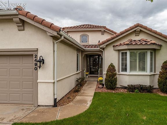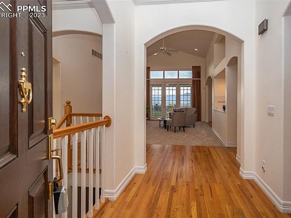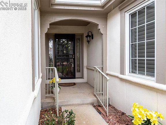 There are only a few properties in Cypress Ridge that can boast unobstructed views of Pikes Peak and the mountain range to the south from both the covered deck and walk-out patio. This is an incredible opportunity to own such a property and enjoy maintenance-free living as a bonus. From the moment you walk in, you get a feeling of calm. The vaulted ceilings beckon you and the wall of windows draw you immediately to those breathtaking views. Then you notice the appealing open floor plan, cozy living room with stone-framed fireplace, well-appointed kitchen with stainless appliances and plenty of cabinet and counter space, ample dining area and you haven’t even ventured to other parts of the house. The main-level master is spacious and offers an attached 5-piece bath and walk-in closet and the same stunning views. A non-conforming bedroom would make a great guest suite with the full bath but could also be used a good-sized office. And for convenience, the laundry facilities are on the main level. The fully finished walk-out basement features a family room with another fireplace, mini-kitchen/wet bar, three more bedrooms, ¾ bath and tons of shelving and storage in multiple walk-in closets and storage areas. This home has been meticulously cared for and offers new carpeting and flooring in the living room, master bedroom and master bath. It’s central location and Award-Winning District 20 Schools complete the package.