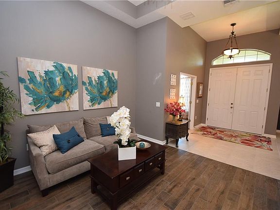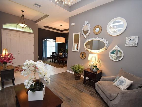 - Interior Features: Ceiling Fans(s), High Ceiling(s), Living Room/Dining Room Combo, Master Bedroom Downstairs, Split Bedroom, Walk-In Closet(s), Window Treatments, Eating Space In Kitchen, Kitchen/Family Room Combo, Stone Counters, Tray Ceiling(s)