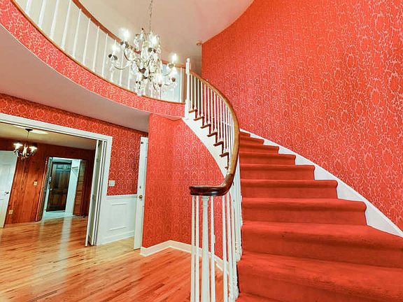 22 Acres surrounds this custom built 5,500 sq.ft. home. Grand entrance w/swirling staircase. Fireplace in Primary Bedroom plus 2 more in Dens. Entertaining spacious basement w/wet bar and fireplace. Library or Office next to the Foyer. Balcony overlooking yard from Primary Bedroom38x15 covered brick patio flows into the backyard for wonderful gatherings. Treed lined winding driveway. Pond & pasture for horses w/hay stall & workshop/storage. Special weddings have been celebrated here.