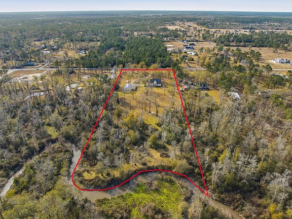 One-of-a-kind Southern Living–style home offering timeless charm, custom craftsmanship, and unmatched acreage. This stunning 5 bedroom, 3.5 bath residence features over 3,600 square feet of living space with inviting front and back porches designed to enjoy the peaceful, picturesque surroundings. Situated on a breathtaking 8.28-acre tract shaded by mature hardwood trees, the property extends all the way to Indian Bayou, creating a truly private and majestic setting rarely found. The home offers an abundance of storage throughout and a thoughtful layout with formal dining area, as well as a private study ideal for working from home. The spacious main living area features custom built-ins flanking a wood-burning fireplace and flows seamlessly into the breakfast area and large, updated kitchen. The kitchen showcases quartz countertops, a custom backsplash, and an impressive amount of custom cabinetry, perfect for both everyday living and entertaining. The primary suite is located downstairs and offers serene views of the backyard with private access to the back porch. The spa-like ensuite includes a jetted soaking tub, walk-in tiled shower, his-and-her vanities, and multiple closets. Upstairs you’ll find four additional bedrooms and two full bathrooms, ideal for a growing family or guests. Additional features include a large laundry room, oversized closets throughout, and a two-car garage with extensive workspace. Above the garage is a 436 sq ft mother-in-law suite or guest apartment complete with a kitchen and bathroom — perfect for extended family, guests, or private quarters. For hobbyists or business owners, the property also boasts a 40 x 60 metal workshop with two roll-up doors, plus a 20 x 60 covered awning on the side, offering endless possibilities. The home is located in Flood Zone X, while the rear portion of the acreage lies in Flood Zone AE. No flood insurance was required on the home’s mortgage. The seller is offering a $10,000 painting allowance and a $2,500 allowance toward new tile in the primary shower, allowing buyers to personalize finishing touches. This extraordinary property offers space, privacy, versatility, and classic Southern elegance — a rare opportunity that truly must be experienced in person. Schedule your private showing today to fully appreciate everything this remarkable estate has to offer.
