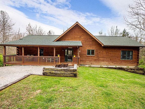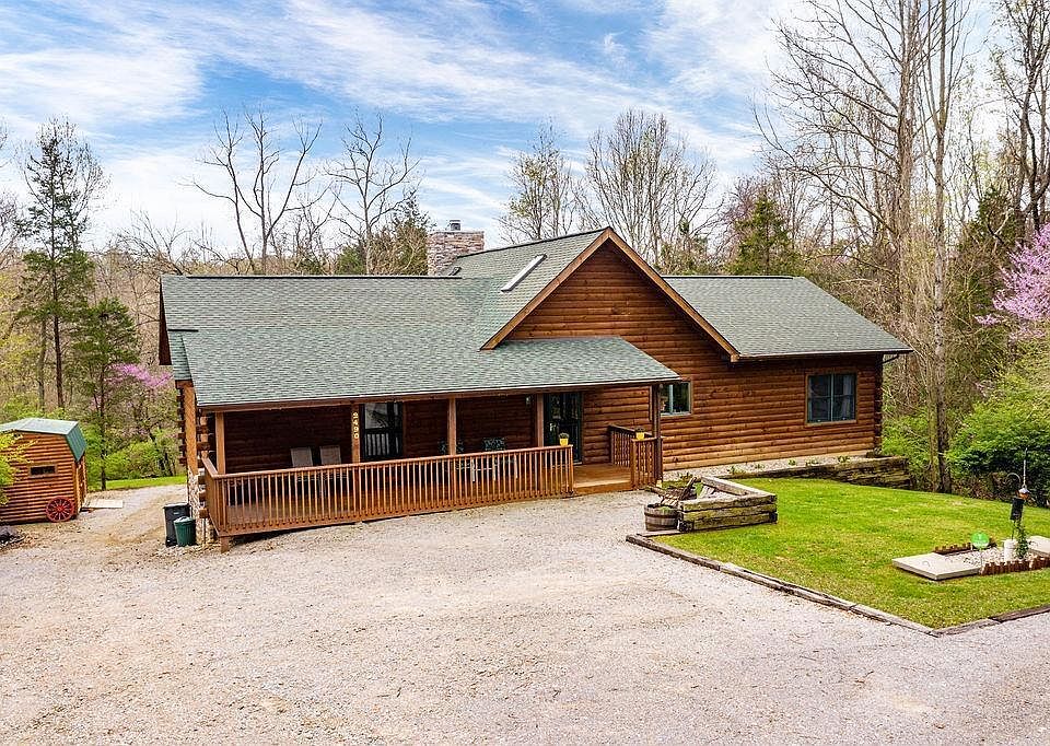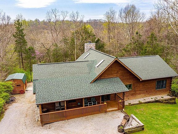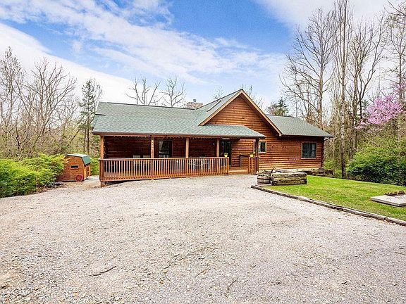 Beautifully well maintained custom built cabin on over 5 acres of private wooded land. Large open living space w/ wood burning fireplace & cathedral ceiling. High-end gourmet kitchen w/quartz counters & stainless steel appliances. Balcony off living area & master bedroom. Master bath w/ large walk-in shower & double vanity. Extra long tub in guest bath. Large shed outback. Walkout from lower level. Great community. Rare find! Check out the virtual 3D walkthrough!