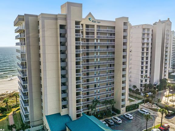Lovely East corner 3 Bedroom 2 Bath condominium in the heart of Orange Beach. This enviable Gulf front condo includes a large, wraparound balcony with views of the beach as well many updates. Tastefully-decorated living area with corner views. The many amenities include a Gulf front pool, hot tub and an indoor pool! White Caps also has tennis courts, a fitness center, BBQ area and Kiddie Pool. White Caps is also close to shopping, dining, golf, arcades, water parks, zip lining, movie theaters, the Zoo and many other activities. Terrific location. Great rental potential. Beautiful floor plan.