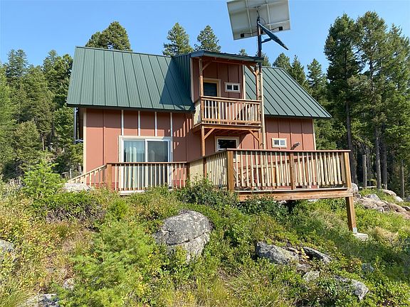 This exceptional mountain cabin offers breathtaking views, privacy, an array of wildlife & stunning scenery. Nestled on 16.16 wooded acres, the well-built cabin offers 960 sq ft of living space & provides all the necessities of home. This fully functional off-grid property would be the perfect home in the woods, hunting cabin or weekend getaway. Bordered on 3 sides by BLM land & Nature Conservancy. A lifetime Assignment of Right-of-Way from BLM provides access to the cabin from Wallace Creek. The cabin's main floor includes a master bedroom, full bathroom, newly remodeled kitchen, dining area, living room with a wood stove & pantry. The upper level offers a second bedroom, a half bathroom, a sitting area, & access to the upper viewing deck. A recently installed sliding glass door now provides access to the new lower back deck. A newly permitted septic system was just installed, July 2024. For more information call Cindy Zaluski at 406-360-2350, or your real estate professional.