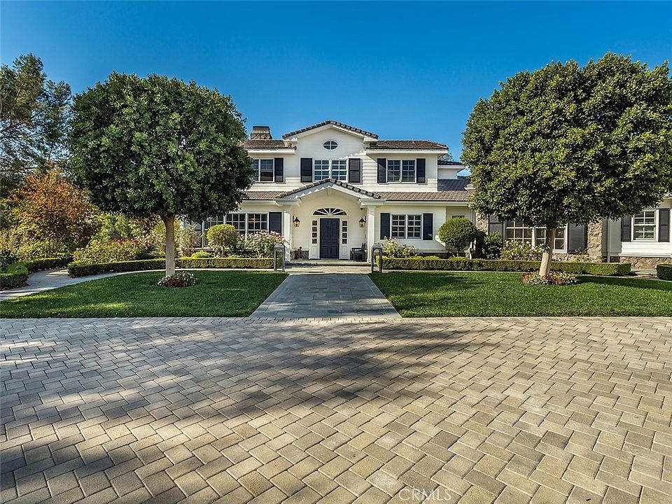 This Hidden Hills Equestrian Estate is gated for privacy and sits on over 3 acres of beautifully landscaped land. The main house boasts approximately 10,980 square feet, including 6 bedrooms, an exquisite formal living room, a spacious formal dining room, a top-of-the-line chef's kitchen with an attached caterer's kitchen, a sunlit breakfast nook, and an adjacent family room. In addition, there is a separate den, a state-of-the-art home theater, and a loft study, all of which add to the spacious flow of the home. The primary suite is a private retreat, featuring a fireplace, a spa bath, dual walk-in closets, and a viewing patio. The interior design details of the home are impressive, with four fireplaces, wood floors, showcase windows, and expansive ceilings. The covered veranda overlooks a lushly landscaped yard that includes a sparkling pool, a spa, a cabana, a BBQ station, a pizza oven, a play yard, and a sports court. There is also a detached 2-bedroom, 2-bathroom guest house with a living room and kitchen. Finally, the property features a 3-stall barn, a tack room, feed storage, and spacious turn out.