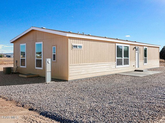 Wide open spaces and privacy abound at this 4 bedrooms, 2 bathroom, 1,600 square foot home on 2.31 acres situated just off of paved roads in the heart of Paulden. Built in 2024, this home is rural living at its best and can be a stunning horse property with a high producing well! The open concept of this home makes it airy and bright throughout. The kitchen is a perfect set up with an island and tons of storage. The master bedroom has an attached bath with a double vanity and walk in shower. The outdoor spaces are perfect for taking in the views and all that this great home has to offer. There is the option for RV parking and this land could be great for horses! Come see it today and make it your own!
